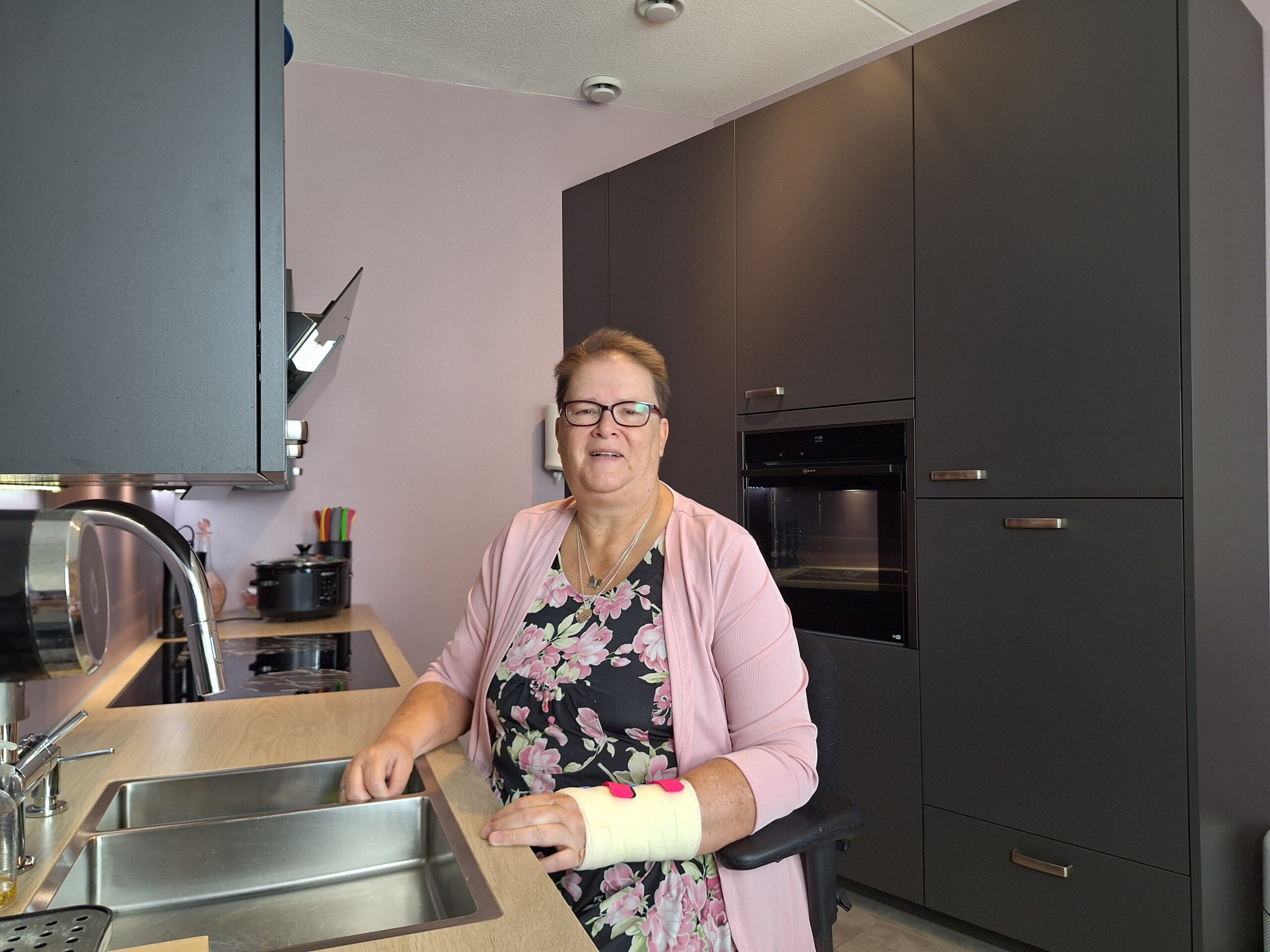 De oude keuken in het appartement van Wil van de Steeg en haar man was wel onderrijdbaar, maar niet verstelbaar. “Voor mij was hij te hoog, voor mijn man juist te laag. Daardoor kreeg ik al snel klachten als ik kookte,” vertelt Wil. Nu hebben ze een elektrisch verstelbare keuken, waardoor beiden comfortabel kunnen werken op hun eigen hoogte. “Ik ben zó blij dat ik weer zelf kan koken,” zegt Wil lachend. “Mijn man is geen ster in de keuken, dus het is fijn dat ik het weer kan doen.”