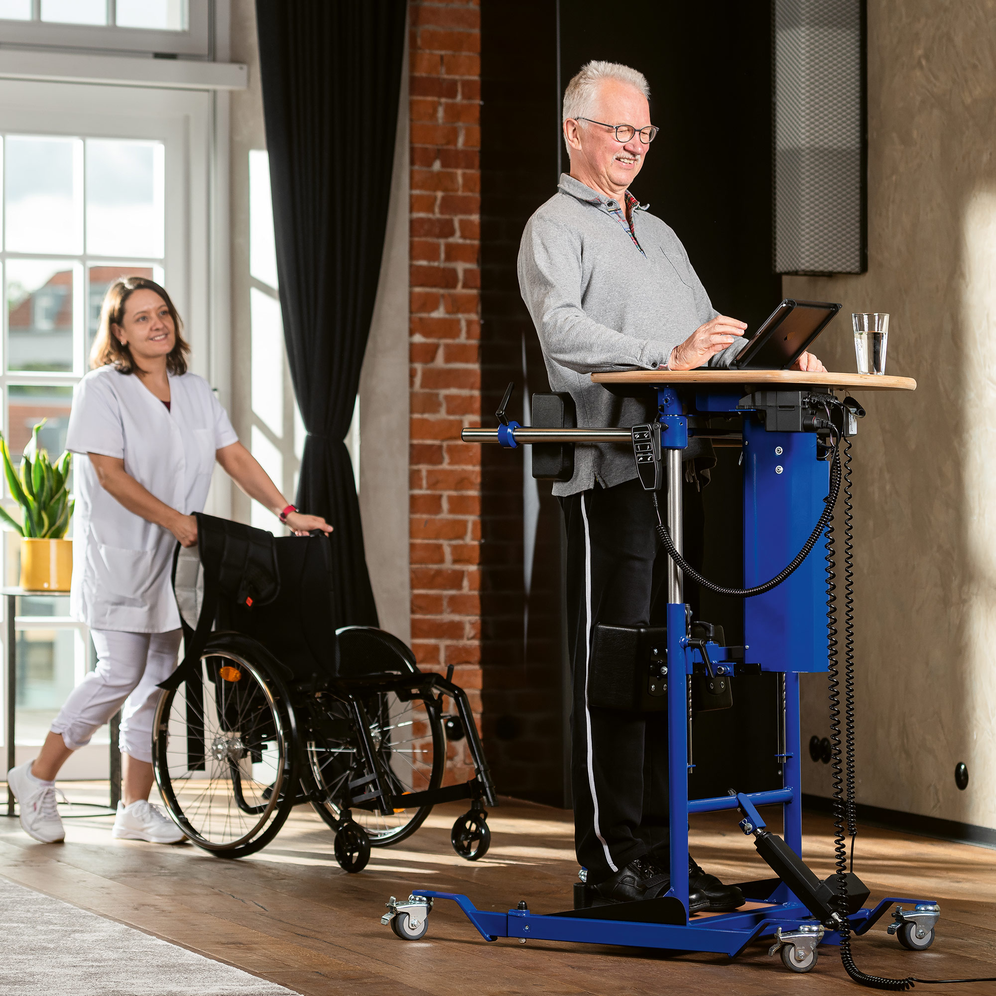 Een sta-tafel is niet zomaar een hulpmiddel: het is een kans om letterlijk weer in beweging te komen. Om te werken aan lichamelijke gezondheid, sociale interactie en het herwinnen van zelfstandigheid.
