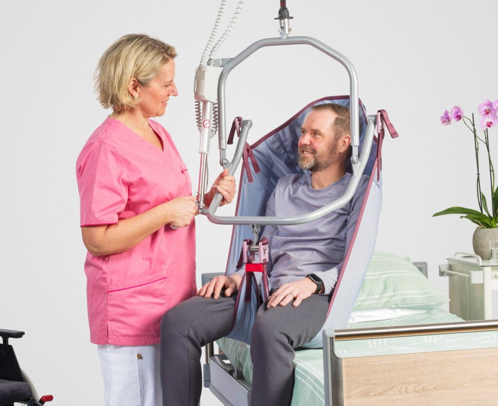 De Molift Air Tilt maakt transfers nog comfortabeler en lichter. Met het elektrische kanteljuk kan de gebruiker nauwkeurig en zonder fysieke belasting worden gepositioneerd, bijvoorbeeld in een rolstoel. De bediening verloopt eenvoudig via de afstandsbediening. Een ergonomische oplossing voor zowel zorginstellingen als thuissituaties.